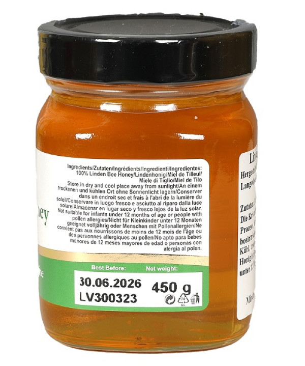 Premium Lindenhonig aus BulgarienRoh, nicht pasteurisiert und rein bio. Qualitäten: Biologisch & natürlich Roh, nicht pasteurisiert und rein, frei von Antibiotika, ohne Zusatzstoffe, ohne GVO.