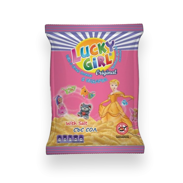 ORIGINAL – Aus dem Namen Original beginnt die Lucky Boy-Reihe, jetzt heißt das rosa Paket mit dem neuen Namen Lucky Girl und die Lucky Red Boy. Dies ist die kleinste Packung und gleichzeitig der beliebteste, speziell hergestellte Snack aus reinem Maismehl mit einem Geschmack von Öl und immer mit diversen und unterhaltsamen Spielsachen und einem auf die tägliche Kaufkraft unserer Kleinverbraucher zugeschnittenen Preis von 40g / Paket